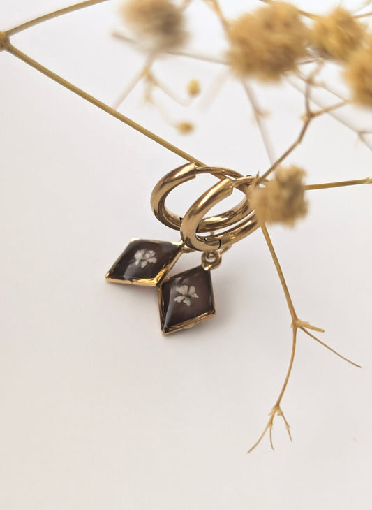 Chocolate Brown Floral | Gold Plated Stainless Steel Hoop Earrings