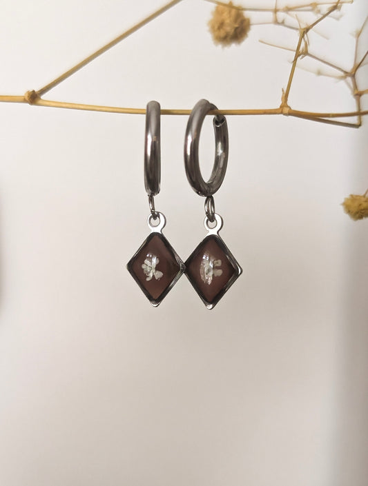 Chocolate Brown Floral | Stainless Steel Hoop Earrings