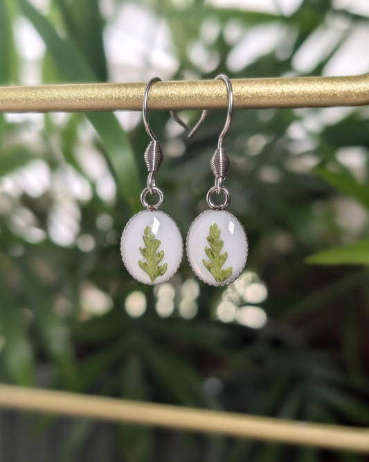 Oval Fern Leaf | Stainless Steel French Hook Earrings