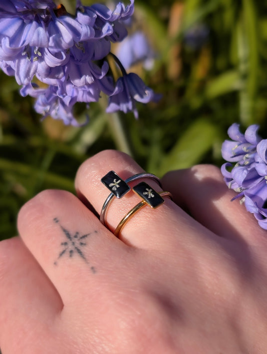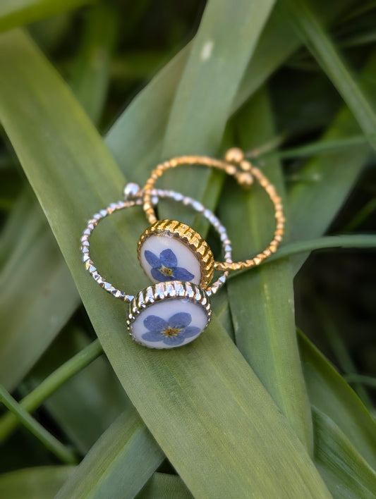 Forget-Me-Knot Flower Adjustable Ring Gold and Silver