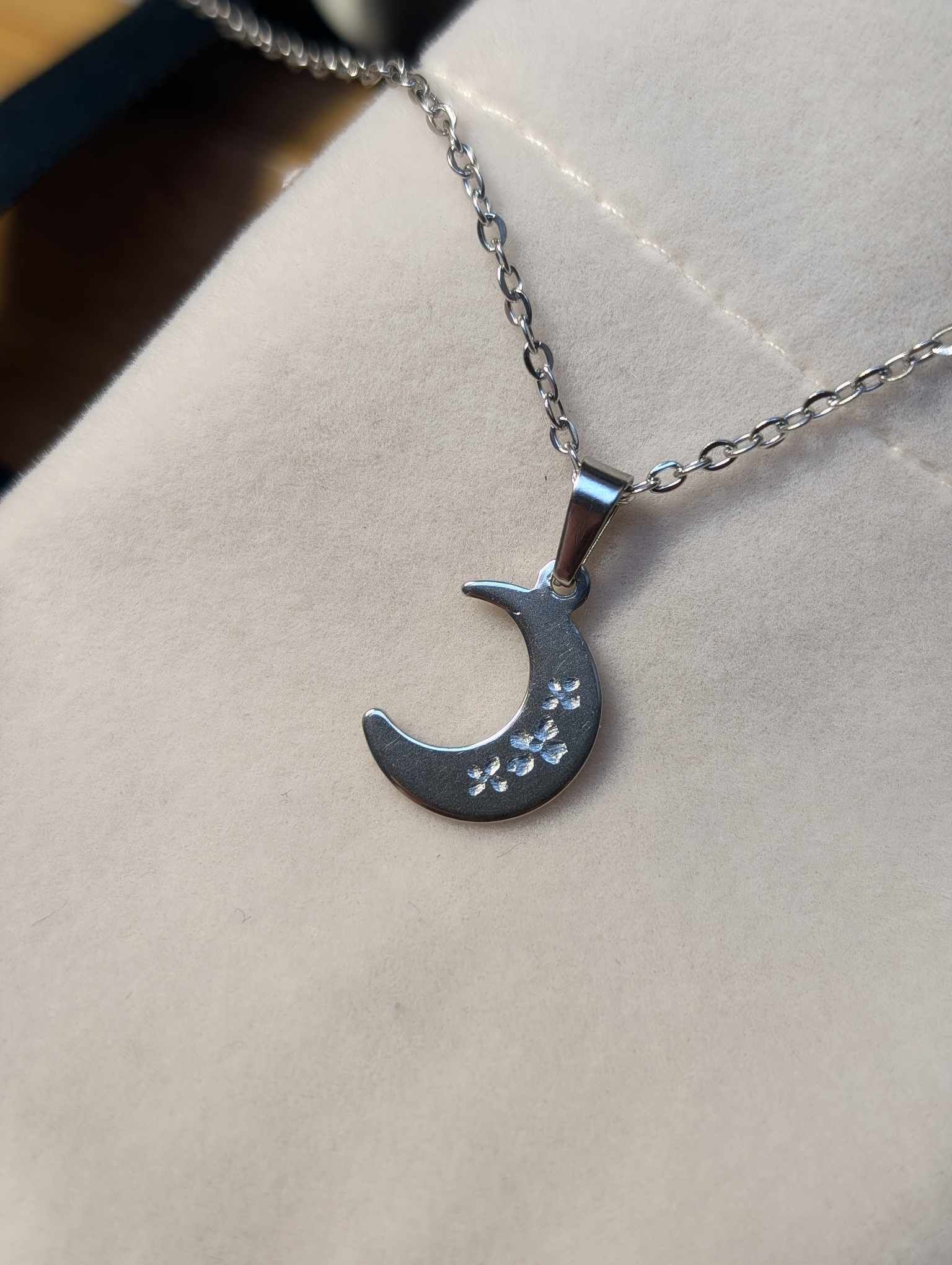 Hand Engraved Floral Moon Pendant Silver Necklace