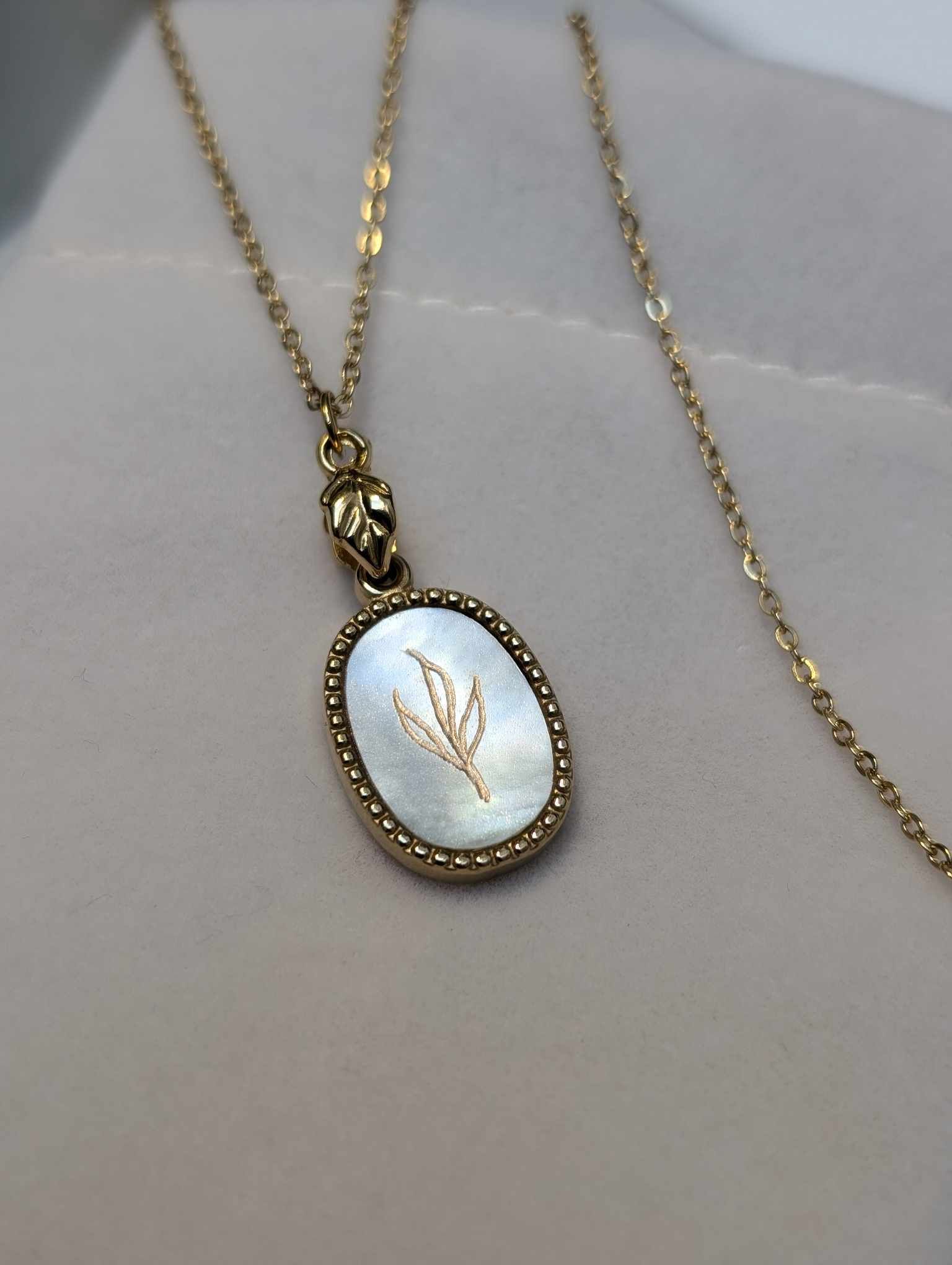 Hand Engraved Leaf Gold Necklace