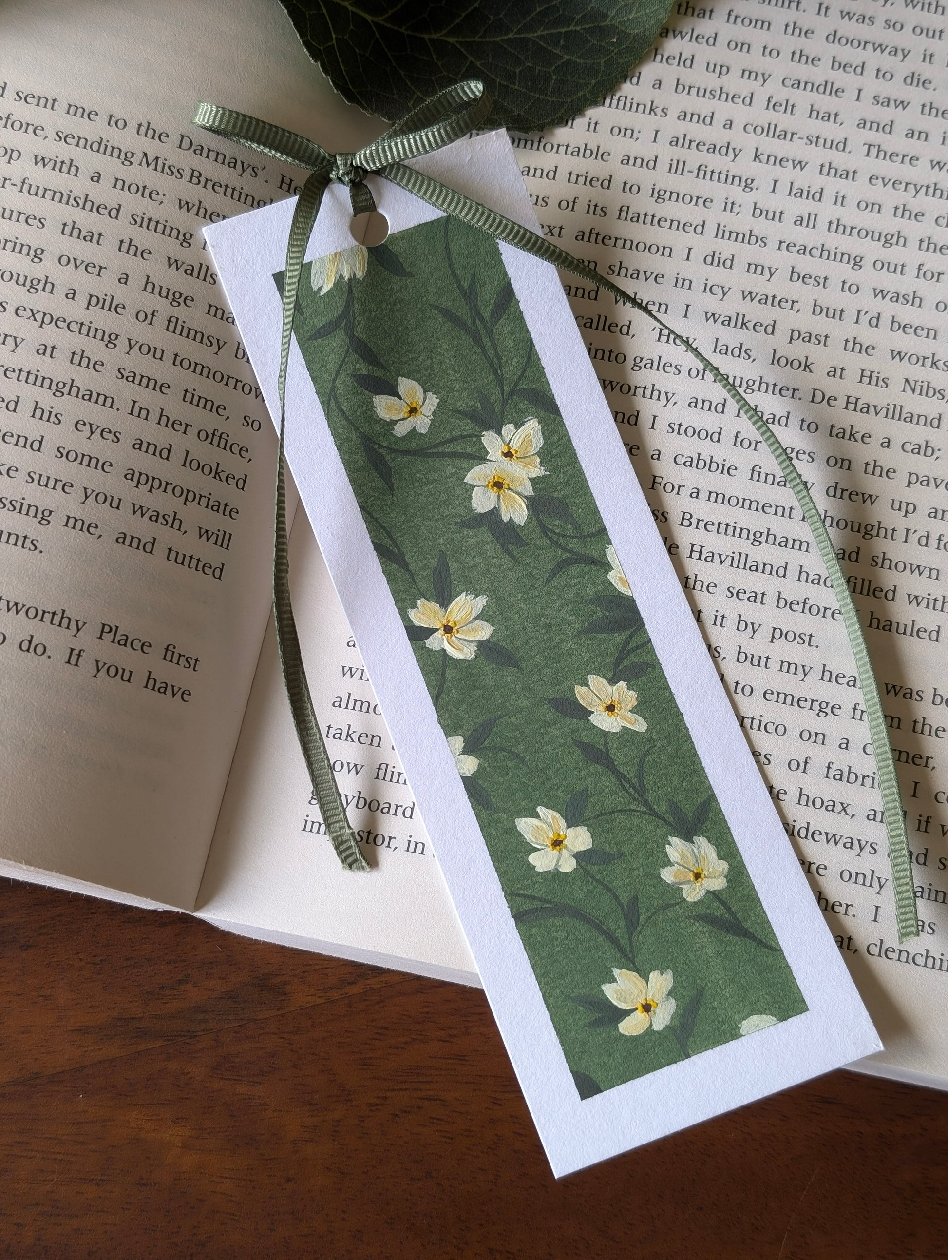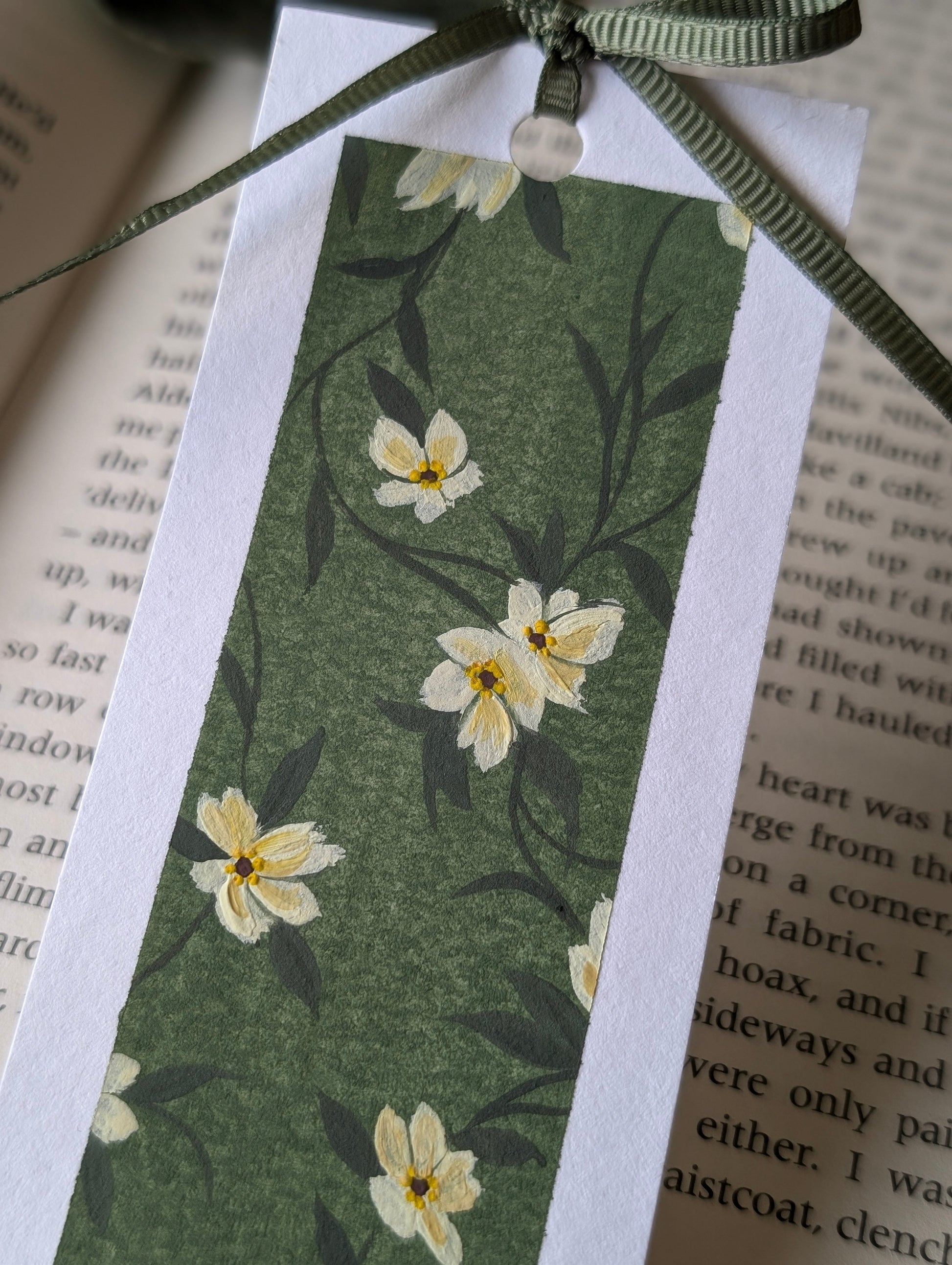 Hand-painted Vintage Flora bookmark on 350gsm card with a ribbon bow tassel.